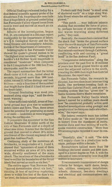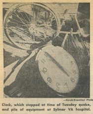 My next door neighbor Curtis Howard, he was 18 or so, volunteered at the two hospitals, Olive View and the San Fernando VA, both in Sylmar. They had people trapped in them, and helped dig through the rubble. I remember one afternoon seeing him just sitting on the curb out front. He was so disturbed by what he had seen, he could hardly talk to me about it, I remember him saying the smell was just so overpowering and sickening. I’ll never forget how full of joy he was when they pulled the kitchen worker, Frank Carbonara, out of the VA Hospital, after more than 2 days.