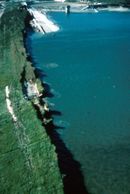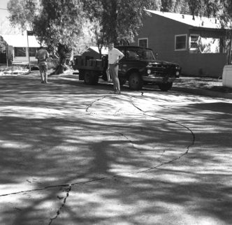 Once we were outside, we saw that mom’s leg was covered in blood, and still bleeding. It took awhile for it to stop, even with pressure, which she said it hurt a “little”. A month or so later, the cut had healed over, but was still a “little” sore when she touched it. When dad looked at it he could see it was swollen and when he pulled on the area around where the cut had been it pulled apart and puss and blood came out. She then had him take a pair of tweezers and pull a small piece of glass out of her knee/shin. She had been in her bathroom when the quake hit, and all the stuff in her medicine chest fell out into the sink and shattered. In those days almost all medicines came in glass bottles. The shaking had thrown her down to her knees and that is how the glass got into knee. I don’t know how long we were out front, before we would venture back into the house. All the neighbors were out front, and we were all comparing damages. The street in front of our house had bucked up 2-3 feet. The next door neighbor’s pool water had all come up out of the pool, in one huge mass and then crashed back down cracking his pool and flooding the patio and then his dinning room. On the other side of us the block wall had been knocked down. My room cracked and one corner of the room had dropped, months later, after all the aftershocks, my Uncle Frank helped my dad jack that corner back up, and then we Spackled and painted. My parents decided to put in wall to wall carpeting instead of refinishing the beautiful hardwood floors, they were terribly warped and stained from the water heater dumping all it’s contents, twice, once with the initial shock-wave and then again a couple weeks later, after we had installed a new one, there was another big jolt. The kitchen was 1-2 feet deep in all the food from the refrigerator and every dish, bowl, pot, pan, glass, utensil, everything that was in a kitchen cupboard was in a heap of broken, smashed, bent junk, it was covered in leftover food, milk, juice, all the condiments (they were in glass jars back then) flour, sugar….it was a smelly gooey sticky mess. The linoleum flooring had to be replace because the glass smashed onto the floor with such force it cut big chunks out, some was so embedded we couldn’t get it out.