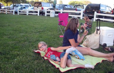 The Fourth of July Parade is never disappointing. We started off the day with a BBQ at the kids around the swimming hole, with friends and more kids! Then we all headed to Main Street, to watch the parade that started at 5:30. This year we had Smokey the Bear in the parade! According to some sources it’s not all that easy to get him to come to your event, so it was a real honor to have him. After the parade we all hung out at the Fairgrounds/Park, with a large segment of the town, relaxing in the cool grass, eating ice cream and snow-cones, the kids racing and tearing around playing in the park, waiting for it to get dark, not till 10 pm, to watch the fireworks.