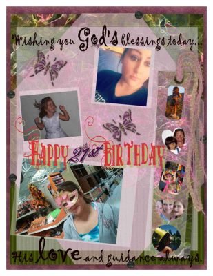 Happy 21st Birthday Ashley! LeiLei February 12, 2020 Happy 21st Birthday Ashley!2020-08-08T16:20:40+00:00 Lei's Scrapbook Pages No Comment Thinking of YOU on your Birthday… …and wishing you the peace and joy of God’s love. Happy Birthday